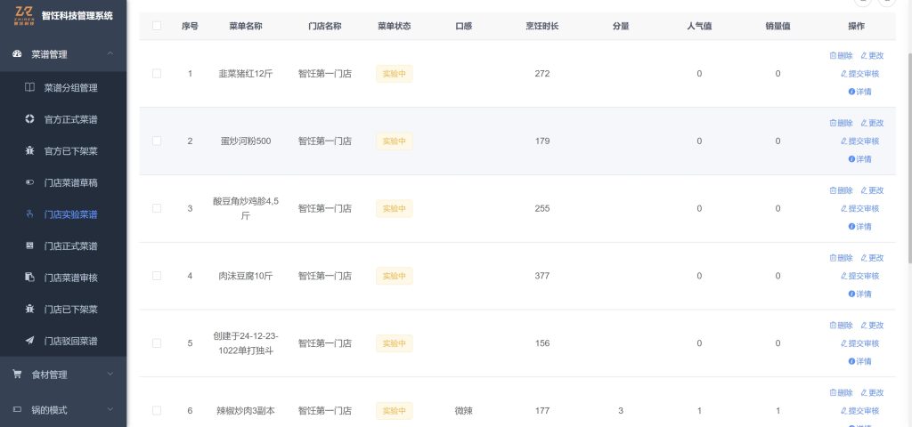 在PC软件平台客户可以管理门店、机器人、员工、食材、机器人的设置;管理自己的菜谱信息,给用户带来的管理上的便捷与方便